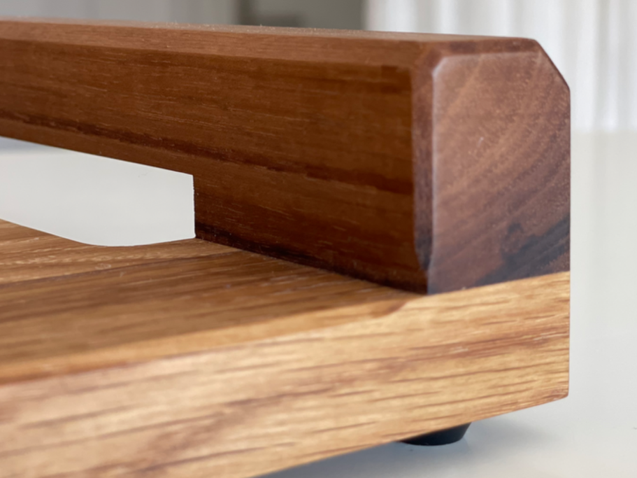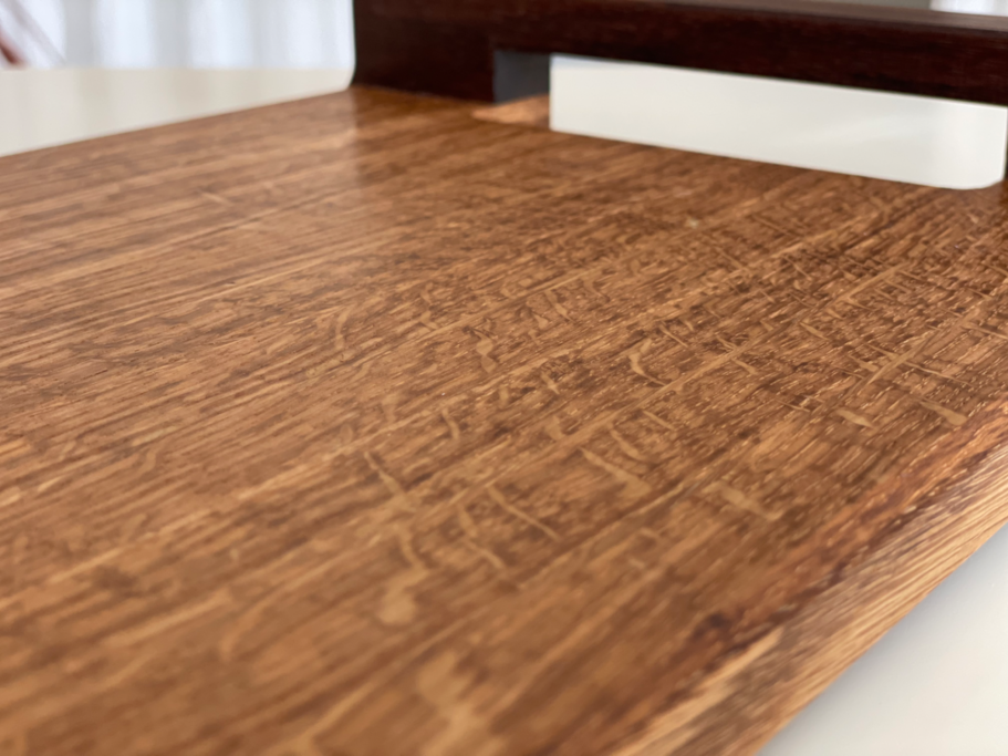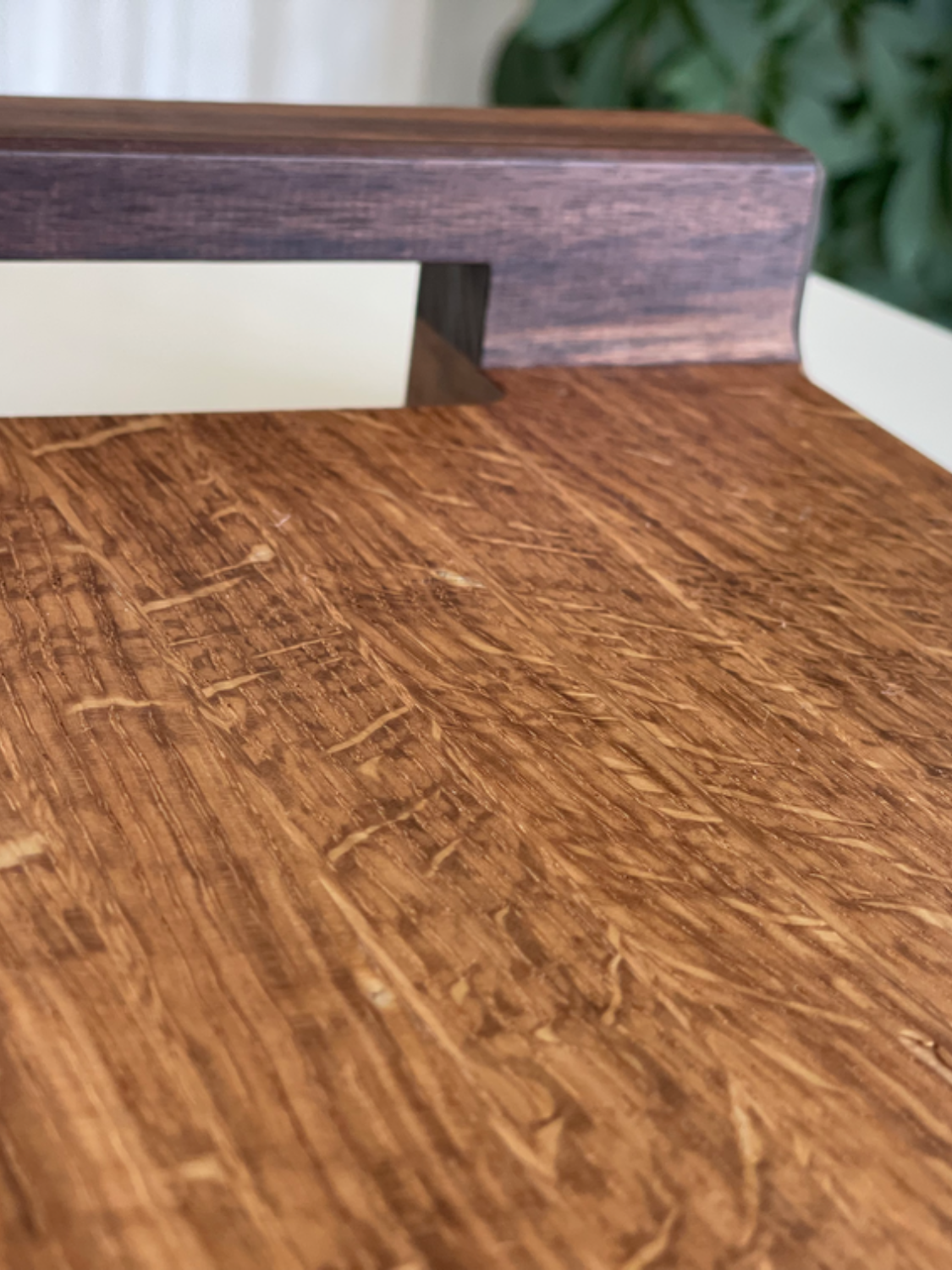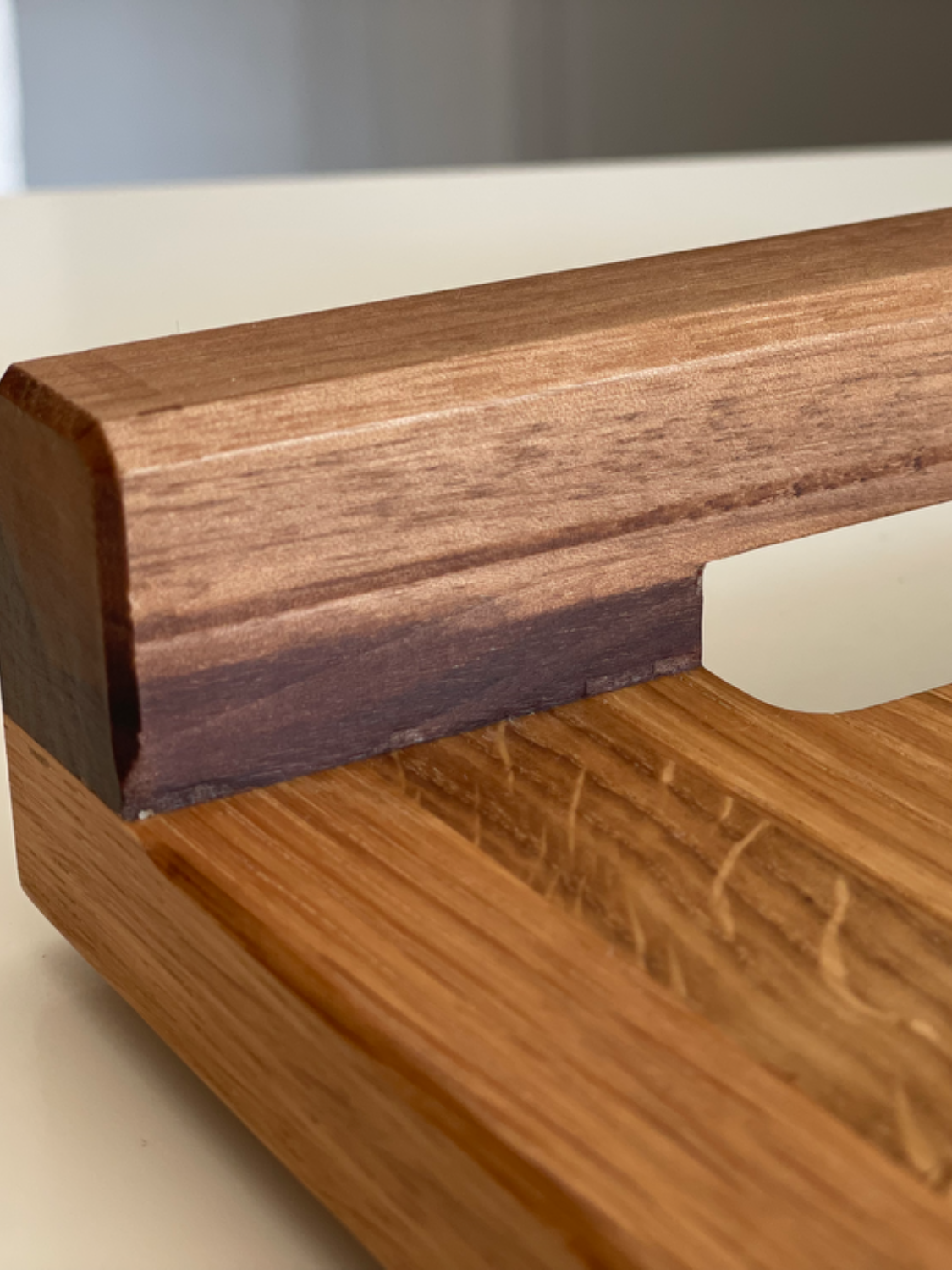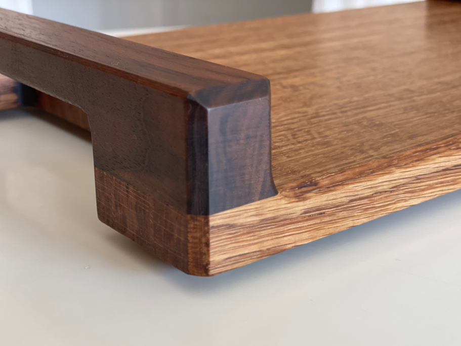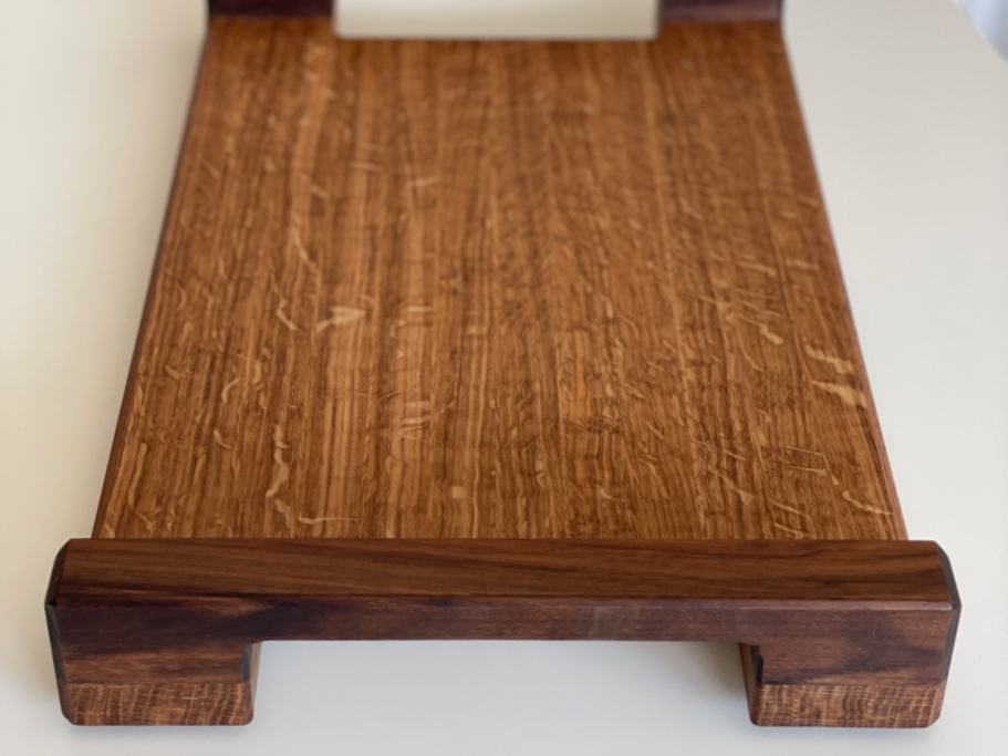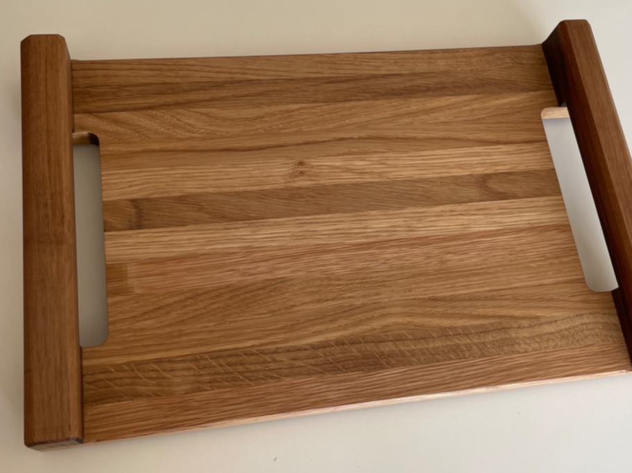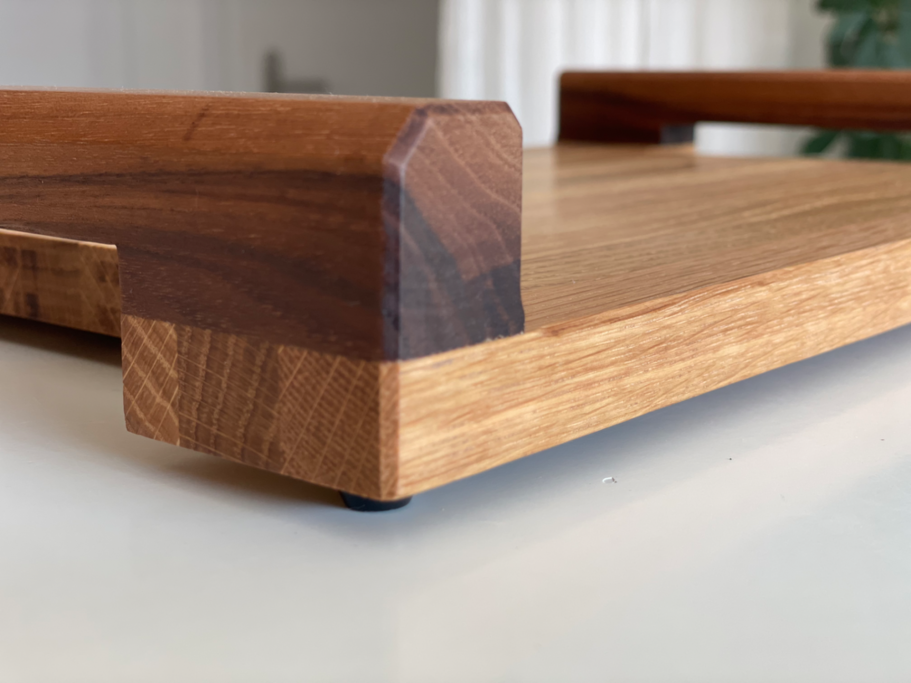 In der Welt des Holzdesigns begeistert ein Tablett aus heller Eiche mit seinen eleganten Linien und der natürlichen Ausstrahlung. Die sorgfältig eingefrästen Griffe aus amerikanischem Walnussholz verleihen dem Design nicht nur eine besondere Ästhetik, sondern auch eine angenehme Haptik. Dieses harmonische Zusammenspiel von Materialien und Farben macht das Tablett zu einem stilvollen Accessoire für jeden Tisch und unterstreicht die Schönheit des handwerklichen Holzdesigns.