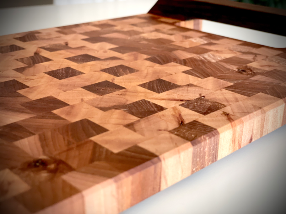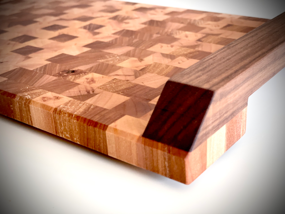 Eine aufwändige Verleimtechnik ermöglicht es, die Maserung des Stirnholzes des europäischen Kirschbaumes optimal zur Geltung zu bringen und gleichzeitig eine hohe Stabilität und Langlebigkeit zu erreichen. Besonders hervorzuheben sind die Griffe, die aus amerikanischem Walnussholz gefertigt sind und durch präzises Einfräsen nahtlos in das Design integriert werden. Diese Kombination aus hochwertigen Materialien und innovativer Verarbeitungstechnik verleiht jedem Stück eine einzigartige Ästhetik und Funktionalität.