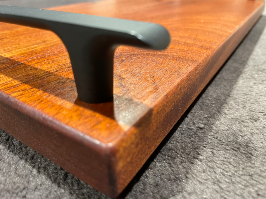 Die dunkle Eiche verleiht jedem Werkstück eine besondere Wärme und Eleganz. In Kombination mit eingefrästen Griffen aus amerikanischem Walnussholz entsteht eine harmonische Kombination, die sowohl ästhetisch ansprechend als auch funktional ist. Die nahtlose Verbindung dieser Materialien sorgt für ein stilvolles Ambiente und hebt die Qualität des Designs hervor, während die sanften Konturen der Griffe ein angenehmes Gefühl beim Benutzen vermitteln.
