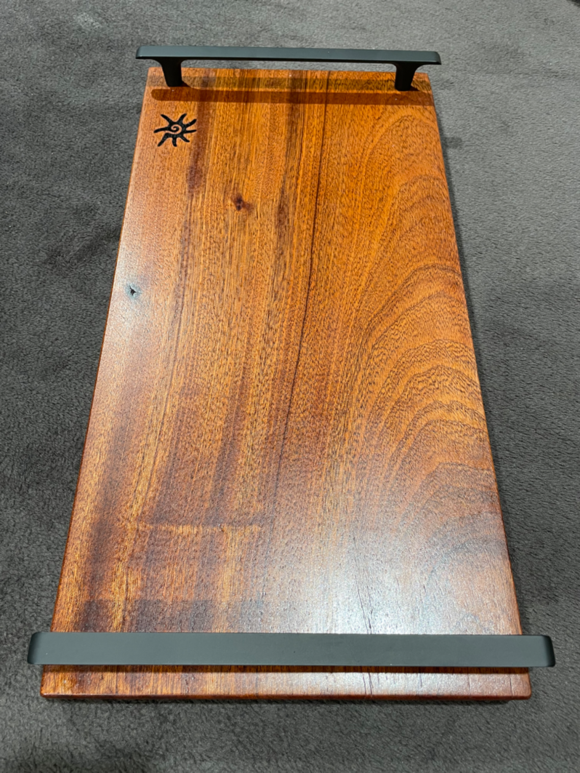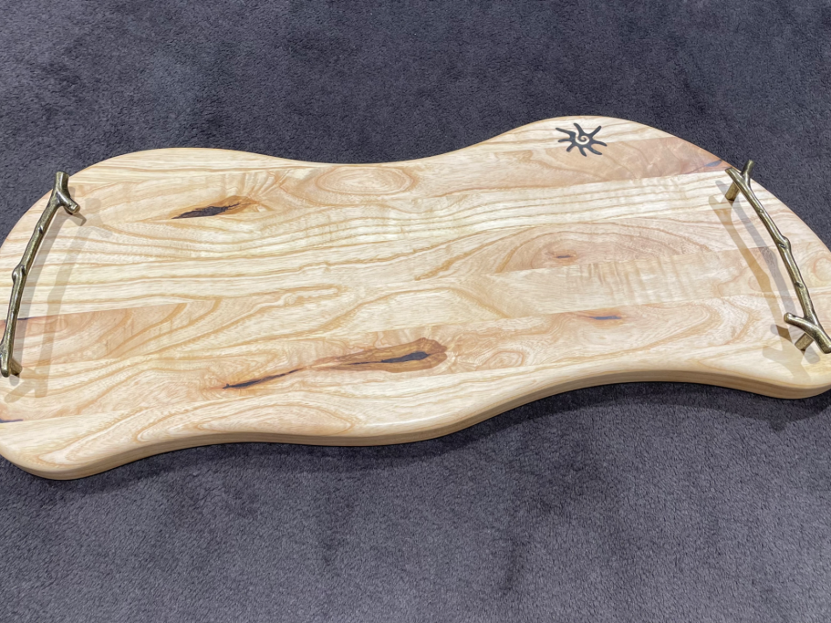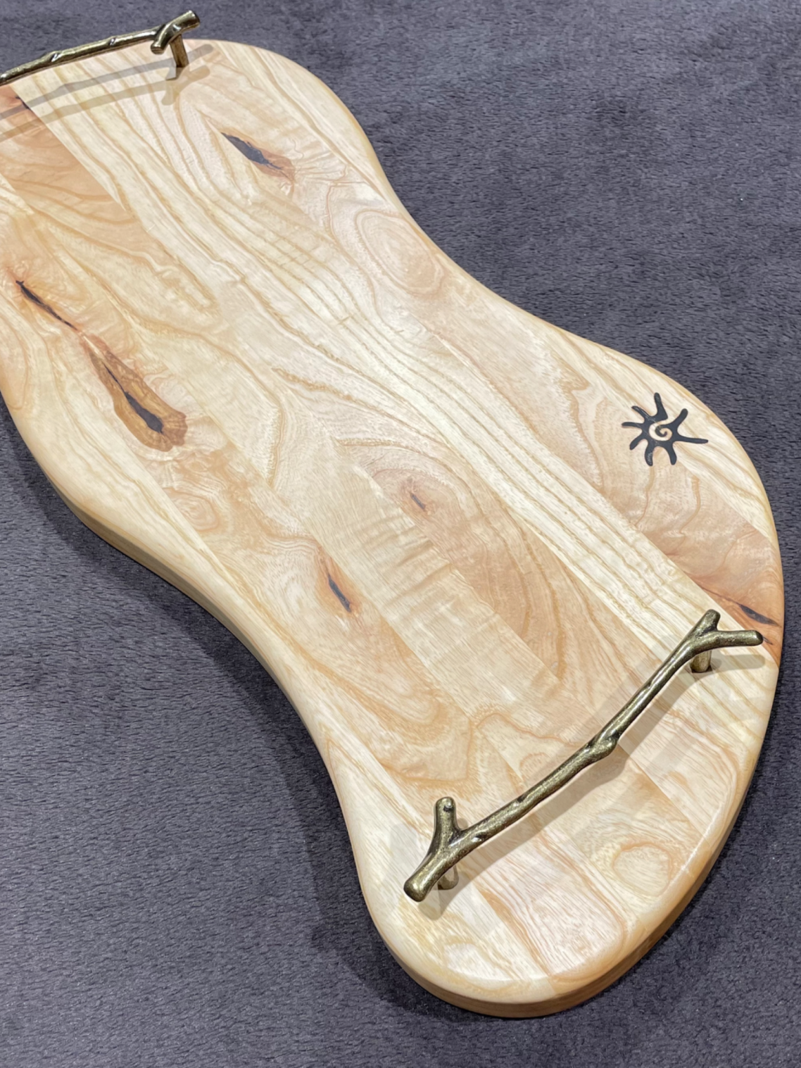 Das geschwungene Tablett mit Epoxidfüllungen und Designergriffen ist ein beeindruckendes Beispiel für moderne Holzkunst. Mit einer Länge von ca. 60 cm vereint es ästhetisches Design und Funktionalität. Die fließenden Formen machen das Tablett zu einem einzigartigen Blickfang in jedem Zuhause. Ideal für die Präsentation von Snacks oder Getränken, spiegelt es die Liebe zum Holzhandwerk und zur kreativen Gestaltung wider.